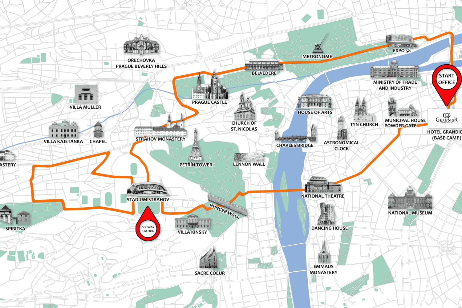 Udforsk Prag på en eScooter og Segway, og få en fantastisk udsigt over byen fra forskellige udsigtspunkter. Tag et kig på John Lennon-muren og Kampa-øen i Malá Strana, og kom tæt på historiske monumenter som Karlsbroen, Rudolfinum og Nationalteatret. Nyd adrenalinen og det sjove ved at bruge segway-køretøjet under denne tur. En times segway-kørsel er inkluderet, mens du opdager det ultimative Strahov Stadion og den udsigt, det byder på. Skift derefter din Segway ud med en e-scooter for at køre til Loreto-kapellet. Fortsæt til Prags borg, og kør forbi Sankt Nikolaj-kirken i Lillebyen. Private ture er tilgængelige på flere sprog som tysk, fransk, spansk eller russisk. Du kan også vælge et andet køretøj, eBike (e-Bike).Includes