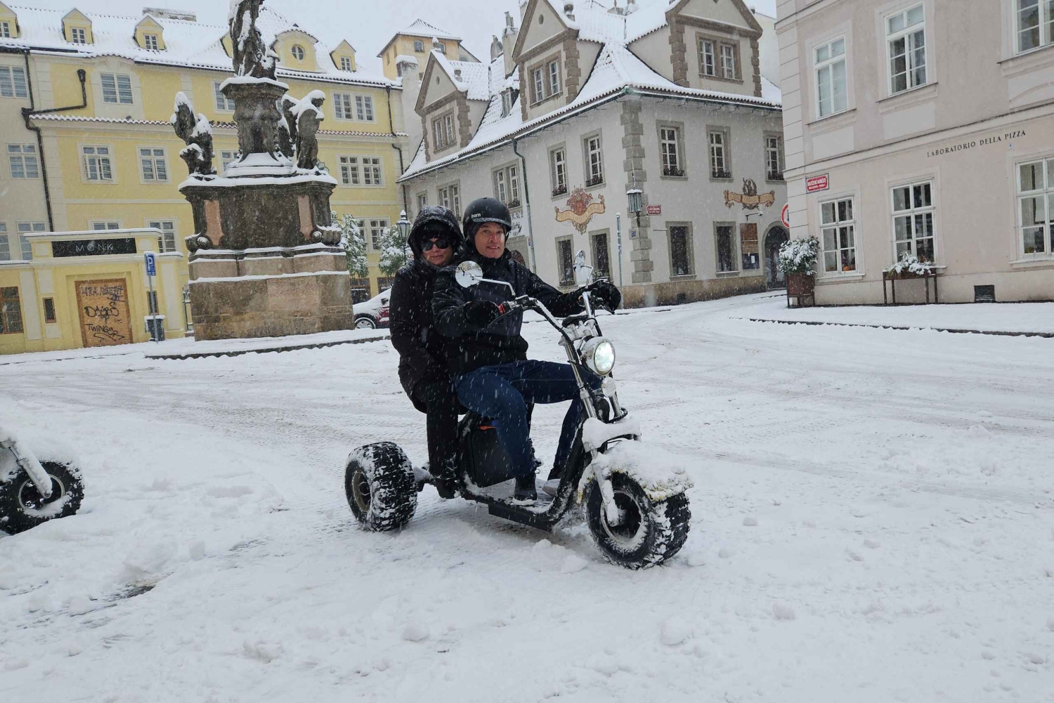 Prag ist auf der ganzen Welt für seine atemberaubenden mittelalterlichen Ansichten und wilden Urlaube bekannt. Erkunde die historischen Highlights der Stadt wie die Altstadt und die Mala Strana bei einer privaten oder gemeinsamen Stadtführung mit dem Elektro-Trike. Steig auf dein Trike (1- und 2-Personen-Optionen verfügbar) und beginne deine Tour, indem du deinen Namen auf der John-Lennon-Mauer unterschreibst und ein Foto von der originalen Brücke der Liebe machst. Nach einem Besuch der Karlsbrücke fährst du weiter zur Statue des pinkelnden Jungen am Franz Kafka Museum. Du überquerst die Moldau in Richtung Altstadt. Das Rudolfinum-Gebäude wird dich auf der anderen Seite des Flusses begrüßen. Halte vor dem Altstädter Ring an, um eine kurze Einführung in die Geschichte Böhmens zu erhalten. Du besuchst das jüdische Viertel in einem der ältesten Stadtteile Prags, den jüdischen Friedhof, die Alt-Neu-Sinagoge, die älteste Sinagoge Europas, und machst Fotos vom Letna-Aussichtspunkt, bevor du das Viertel der Kleinseite besuchst.Includes