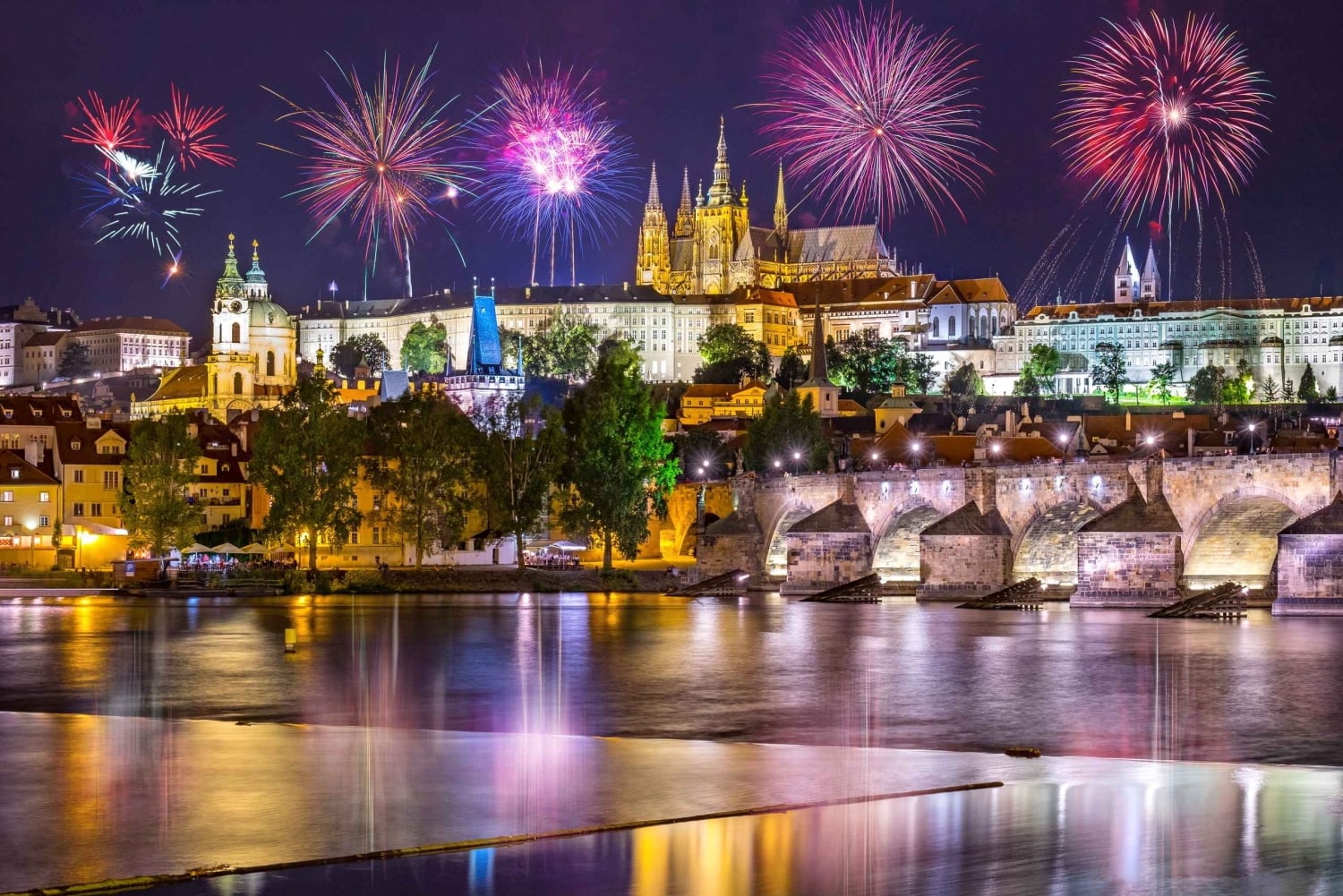 Genieße bei einer unvergesslichen Silvester-Kreuzfahrt einen atemberaubenden Blick auf die festliche Stadt. Probiere tschechisches Essen und läute das neue Jahr stilvoll ein. Trefft euch am Pier, um an Bord des Bootes für euer Silvesterprogramm zu gehen. Genieße ein Willkommensgetränk, während du in See stichst. Bestaune, wie magisch Prag vom Wasser aus aussieht. Genieße während der Bootsfahrt eine Auswahl an warmen und kalten Gerichten vom Buffet, Getränke und eine tolle Atmosphäre an Bord. Wenn du ein Fan der traditionell tschechischen Küche bist, musst du unbedingt die gebratene Schweinshaxe probieren. Du erhältst eine Flasche Sekt (0,375 ml), damit du um Mitternacht anstoßen kannst. Erlebe eine besondere Silvester-Feier und tanze zur Live-Musik bis spät in die Nacht. Gehe um Mitternacht auf das Oberdeck, um die beste Aussicht auf das Feuerwerk zu genießen.Includes