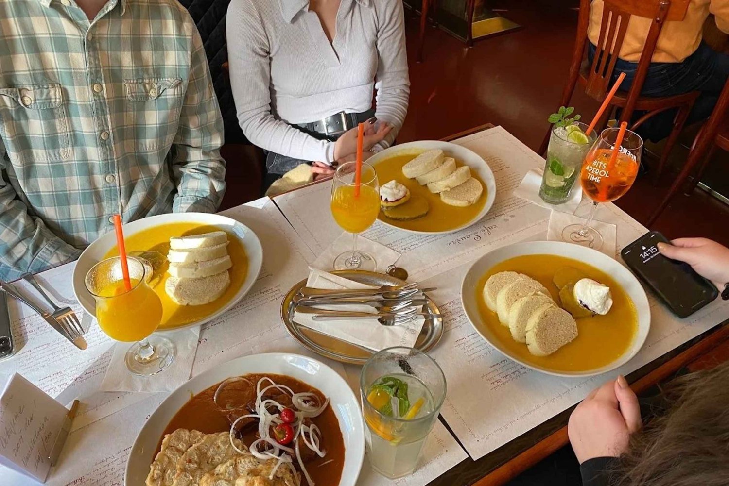 Explora el casco antiguo de Praga en un tour gastronómico a pie que te lleva a los lugares favoritos de los lugareños que no encontrarías por tu cuenta. Por el camino, disfruta de 6-7 degustaciones de delicias checas tradicionales, como chlebíček (sándwiches abiertos), sopas checas abundantes, albóndigas checas clásicas y el reconfortante sándwich de pastel de carne checo. Date un gusto con dulces como el koláče checo y el cremoso větrník, mientras disfrutas de cervezas locales y café recién hecho. Conoce a otros viajeros como tú mientras paseas por calles ocultas, callejones históricos y patios encantadores, descubriendo los sabores y las historias que hacen de Praga un verdadero destino gastronómico. Este tour a pie te ofrece una mezcla perfecta de aventura culinaria, cultura local y bocados deliciosos.Includes