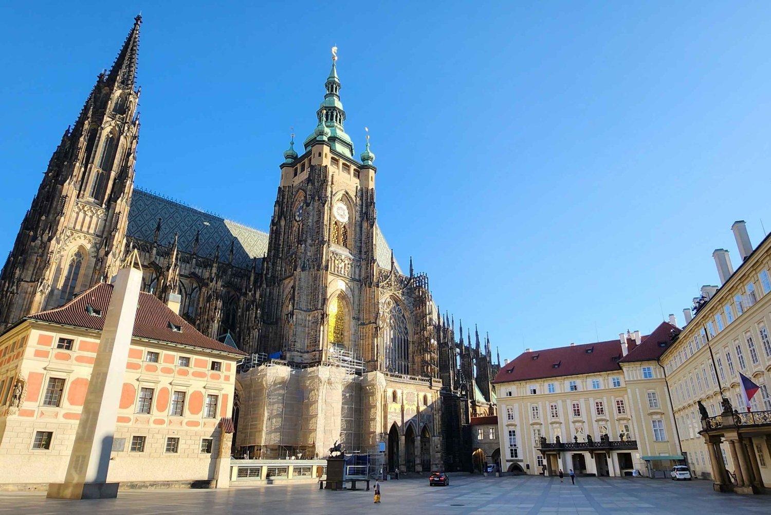 Whether you have limited time or just want to see the highlights of Prague, this tour will take you to the places worth seeing. The tour, unlike most of its kind, goes in the opposite direction and starts at Prague Castle, allowing visitors to explore this unique monument and then head down into town to see other sights. The first stop is the grounds of Prague Castle, that you can explore from the outside. The tour then continues into the city and passes through Mala Strana (Lesser Town) to Charles Bridge and its famous sculptural galery. From there you explore the picturesque streets of the Old Town and the famous Old Town Square with its admired astronomical clock. Your private walking tour then ends at Náměstí republiky, with passing by the gothic Powder Tower and an Art Nouveau monument called Municipal House.Includes