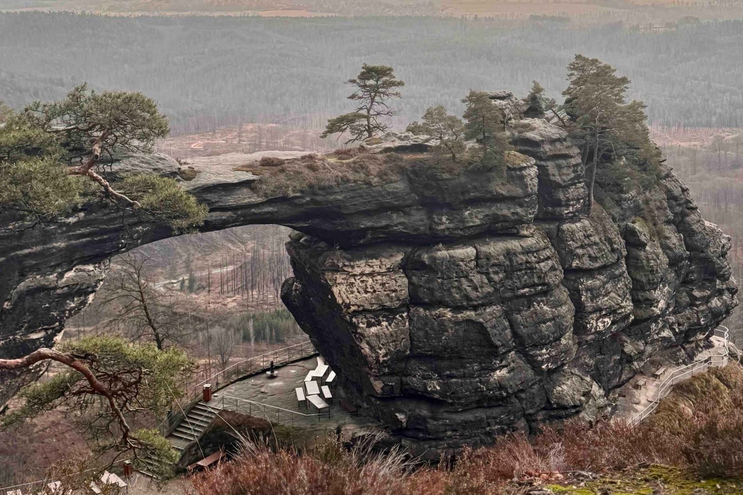 Snacks - fruit and croissant and chilled water Lunch - A la carte lunch Vegetarian and vegan meal options available Air-conditioned comfortable minivan Onboard Wifi connection Entry included - Bastei Bridge, Pravčická Gate, Wild Gorge and Tisá Rocks The Wild Gorge, featuring a wonderful boat ride reminiscent of a gondola experience Skip-the-line access to the famous Pravčická Gate and the Tisa Rocks We provide trekking poles, disposable raincoats and umbrellas for a day We provide hiking sticks, ice cleats, hats, gloves, etc. for a day in winter Professional local guide: fluent in English and certified in first aid, including CPR Car seats are available for children We pick up our clients from the doorstep of the hotel, Airbnb, accommodation, apartment Drop- off is included Our tours are conducted in small groups We offer different tours depending on the season — SUMMER or WINTER You experience a truly enriching day, where you will create meaningful memoriesImportant Information