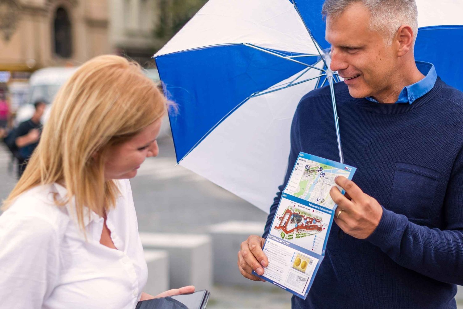 Enjoy a convenient minibus transfer from the Old Town to Prague Castle, where you'll skip the lines to purchase a ticket and explore at your own pace. Meet your driver and pick up your tickets and audioguide at Get Prague Guide office at Maiselova 5. Step back in time to the 9th century as you discover the history of the castle, once home to Bohemian kings and Holy Roman emperors. Visit the stunning St. Vitus Cathedral, the Old Royal Palace, St. George’s Basilica, and the colorful houses of Golden Lane. Our online guide will point out for you the most important and the most interesting parts inside of each interior. Just follow the recommended route on the map, which was carefully planned by our experienced tour guides. You will be guided with a very simple system that will use very little data of your internet mobile connection (up to 100Mgb). Your ticket is valid for 2 days from the day you receive it and includes 1 entry to the castle interiors, taking the hassle out of your exploration of this vast and extraordinary complex.Includes