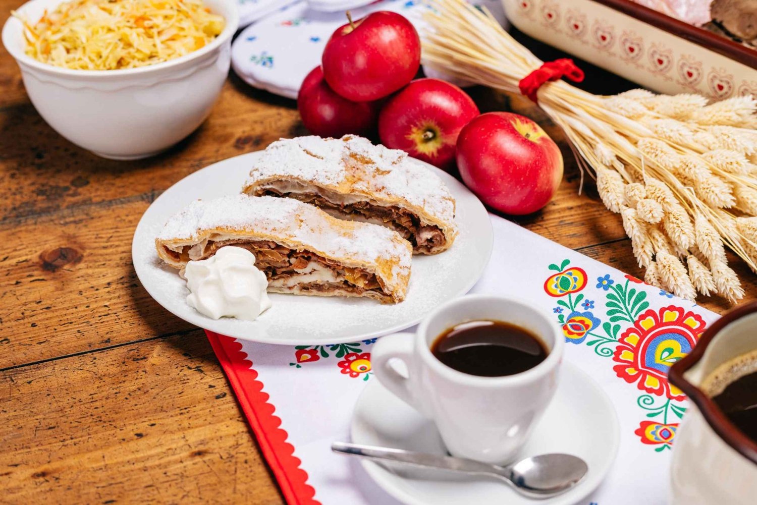 Sit down and enjoy a delicious 4-course dinner of original, traditional Czech recipes. Watch the folkloric dance show as you sip on unlimited drinks, including beer, red or white wine, soft drinks, and water. Start the evening with a traditional mead toast before the show. Listen to traditional songs from the Bohemian and Moravian regions and try to sing along with the band. Learn some traditional dance moves, such as the Mazurka, and become a part of the show. Choose your main dish from the variety of delicacies below. Hearty traditional fare is served to you in the middle of the table or as a garden buffet. Together with the band, finish the show by singing along to national songs of your country. Menu: Light homemade cottage cheese spread with bread Traditional Czech potato soup Main Dish of your choice (see below) with homemade cabbage salad Sweet apple strudel Coffee or tea Choose a main dish from one of the following menus: 1) Special Menu: - Special Trout: Grilled with mashed & baked potatoes - Special Salmon: Grilled with mashed & baked potatoes - Special Duck: Roasted (¼) with mashed & baked potatoes - Special Halal Chicken: Skewer with mashed & baked potatoes - Special Semi-Kosher Trout: Grilled with potatoes & egg in aluminum foil - Special Pork: Baked knuckle with horseradish, mustard, sauerkraut, and bread 2) Standard Menu: - Standard Traditional Meat: Baked meat (smoked pork ham, chicken drumstick, pork steak) with mashed and baked potatoes and homemade cabbage salad - Standard Chicken: Baked (¼) with mashed & baked potatoes - Standard Vegetables: Grilled with mashed & baked potatoesIncludes