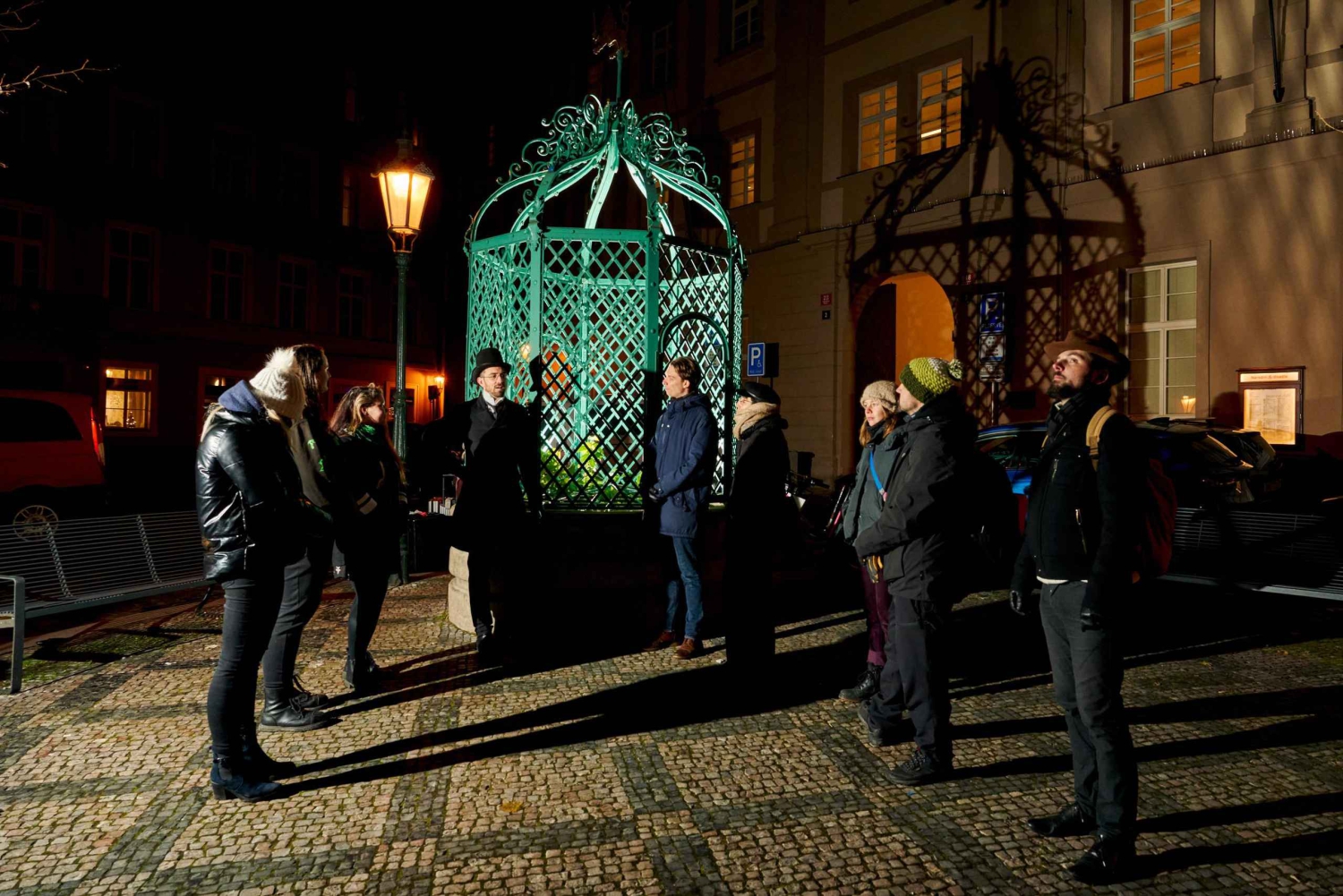 Many cursed souls are haunting the city of Prague, ancient legends say. There are places connected to murder, torture and executions, alchemists creating mysterious monsters, bad plague waves and even worse doctors. Your guide will share these tales with you, but the suspenseful storytelling also effortlessly teaches you historical facts about the city. Locals had felt the need to pass these stories down across many generations before they were finally penned down by Prague writers in the early 1900’s, an era that inspired your guide's elegant historical costume. Your guide will meet you on Old Town Square in the heart of Prague. From there, you begin your journey into the eerie lanes with notoriously haunted houses, decommissioned cemeteries, medieval churches and hospitals and other corners of the city linked to the supernatural. Through the tight and immersive act, you will get to know the true haunted side of Prague. But since all the legends are rooted in actual historical settings and your guide will keep apart fact and fiction, this tour is also a legitimate way to get to know Prague. The tour makes stops at a handful of famous landmarks of Prague’s Old Town and Jewish Quarter (see under Intinerary) but also leads through picturesque areas off the beaten path with hidden gems. In 90 minutes, you'll be back at the starting point, where you will receive further tips for the evening and a selection of Prague sightseeing suggestions inspired by the experience. Children welcome, but please consider the tour contains blunt descriptions of violence. Non-smoking. Runs in any weather.Includes