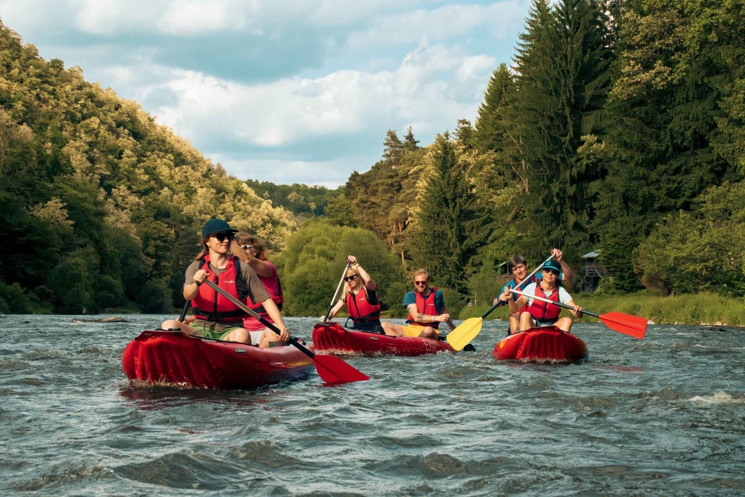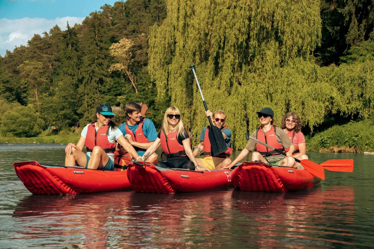 Jätä kaupunki taaksesi ja matkusta kanootilla läpi syvän rotkon, jonka Sazava on kaivanut pääkaupungin ulkopuolelle. Rotko on täynnä uskomattoman tiheitä metsiä ja dramaattisia kallioita, mutta myös pieniä mökkejä, jotka paikalliset rakensivat 1900-luvun lopulla. Opas antaa sinulle yksityiskohtaiset ohjeet matkan alussa, ja sinulla on riittävästi aikaa kokeilla veneen ohjaamista tasaisella vedellä ennen lähtöä. Oppaasi on tukenasi aina, kun tarvitset apua, vaikka on epätodennäköistä, että tarvitset hänen apuaan ensimmäisten melontojen jälkeen. Jokea pitkin ajaminen kestää noin 4-5 tuntia, mukaan luettuna muutama pieni tauko, jolloin voit hengittää raikasta ilmaa, ja tietenkin pysähdyt pienelle lounaalle matkan varrella. Lisäbonuksena tällä matkalla on tapa, jolla pääset lähtöpisteeseen - paikallista junareittiä pitkin, joka kulkee kallioisen maaston halki, ja matkan varrella on joitakin upeita kivestä tehtyjä viadukteja. Tälle retkelle ei tarvita erityisiä varusteita. Jos lämpötila on erittäin alhainen ja sää sateinen, on suositeltavaa käyttää märkäpukua, jonka saat pyynnöstä.Includes