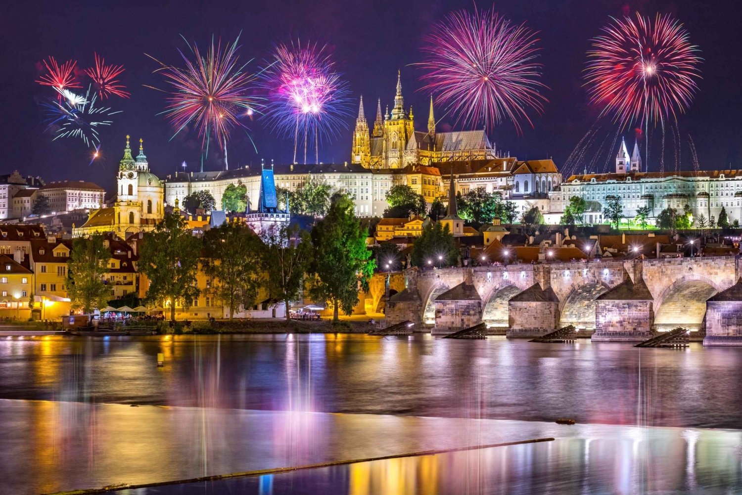 Profitez d'une vue imprenable sur la ville en fête lors d'une croisière inoubliable pour le réveillon du Nouvel An. Dégustez des spécialités tchèques et accueillez la nouvelle année avec style. Rendez-vous à l'embarcadère pour monter à bord du bateau et participer à votre programme du réveillon du Nouvel An. Savourez un verre de bienvenue pendant que vous prenez le large. Admirez la magie de Prague vue depuis l'eau. Pendant la croisière, profitez d'un buffet varié de plats chauds et froids, de boissons et d'une ambiance exceptionnelle à bord. Si vous appréciez la cuisine traditionnelle tchèque, ne manquez pas de goûter le jarret de porc rôti. Une bouteille de vin mousseux (0,375 ml) vous sera offerte pour le toast de minuit. Vivez cette soirée spéciale du réveillon du Nouvel An avec de la musique live pour danser toute la nuit. À minuit, rendez-vous sur le pont supérieur pour profiter des meilleures vues sur les feux d'artifice.Includes