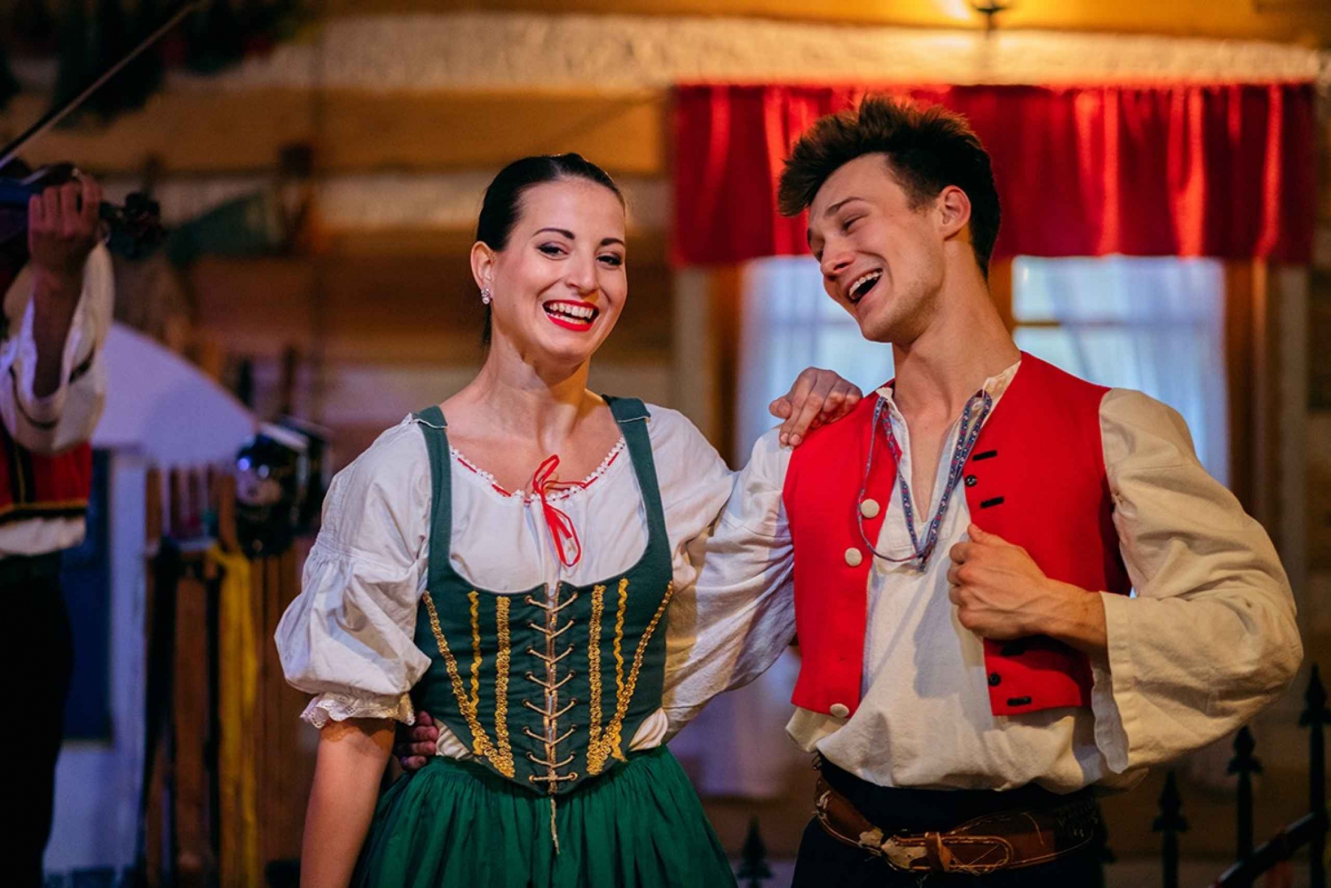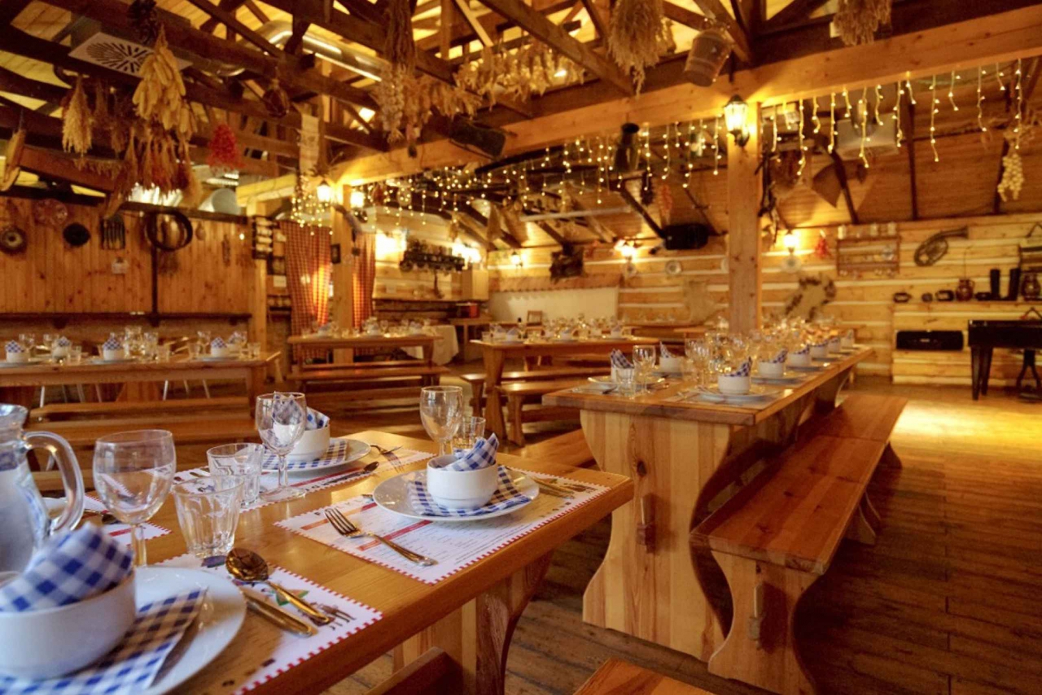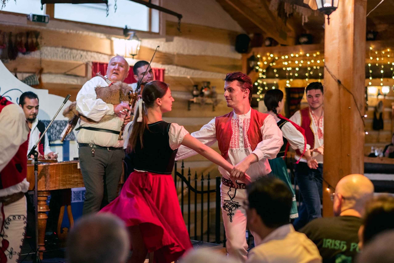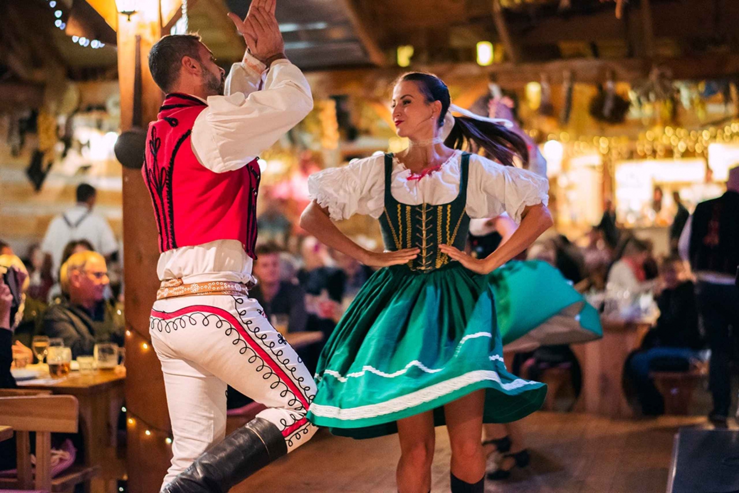 Durante una serata popolare a Praga, ti aspetta una vivace e colorata celebrazione della cultura tradizionale ceca. La serata è ricca di vivaci danze popolari, canzoni allegre e costumi autentici che danno vita alle tradizioni locali. Gli ospiti possono gustare una ricca selezione di piatti classici cechi, tutti serviti in un'atmosfera calda e rustica, con birra e vino illimitati per tutta la serata. Con i comodi trasferimenti inclusi, è un modo semplice e divertente per vivere il fascino, i sapori e la musica della campagna ceca proprio nella città di Praga. Il giorno dell'attività, contatta il fornitore tramite WhatsApp o SMS per ottenere informazioni più dettagliate sul servizio di taxi serale. Quando entri nel ristorante (circa 20 minuti di viaggio) ricevi un drink di benvenuto: un tipico liquore ceco. Per tutta la sera ti godrai uno spettacolo vivace con balli e canzoni. Goditi il consumo illimitato di vino e birra. I trasferimenti sono inclusi.Includes