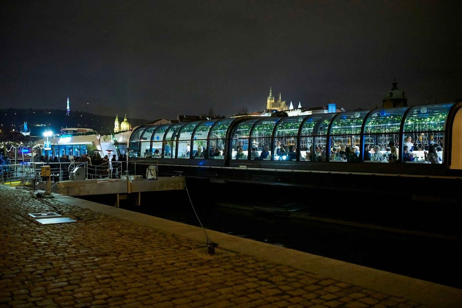 Per questa crociera di Capodanno sono disponibili 2 opzioni. Siediti a prua con l'opzione Silver oppure rendi tutto più 'in' con l'opzione Gold per accogliere il Nuovo Anno in un'esclusiva area sotto un tetto trasparente. La crociera si concluderà nelle vicinanze di Piazza della Città Vecchia alla banchina vicino a Ponte Cechuv.