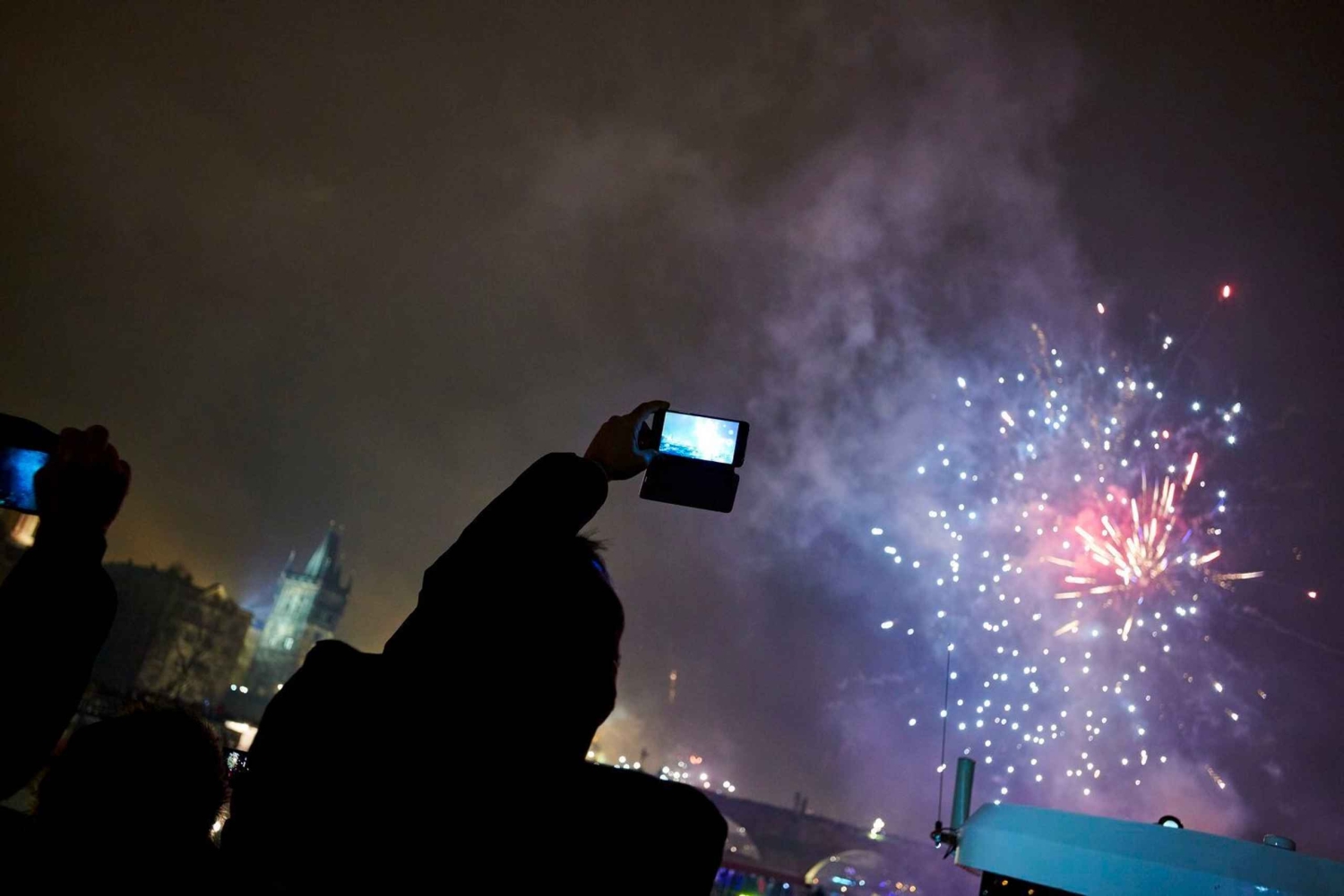 Mentre aspetti il rintocco della mezzanotte, divertiti partecipando al quiz di Capodanno e assistendo all'esibizione di un mago. All'arrivo del Nuovo Anno, festeggerai con un bicchiere di prosecco. Ammira lo spettacolo di fuochi d'artificio che illuminano il cielo buio vicino al Ponte Carlo.