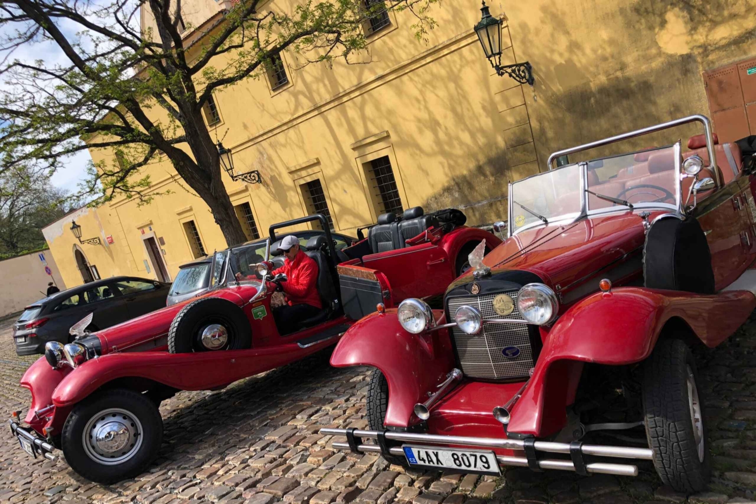 Odkryj urok starej Pragi podczas naszej 90-minutowej wycieczki klasycznym samochodem. Cofnij się w czasie dzięki naszej ręcznie wykonanej replice Mercedesa 770K i ciesz się obszernym audioprzewodnikiem w wielu językach. Zrelaksuj się w zaciszu naszego kabrioletu, gdy zabierzemy Cię w ekscytującą podróż po najsłynniejszych zabytkach Pragi. Zapewniamy łatwy odbiór i dowóz do hotelu (wliczony w cenę), więc nie musisz się martwić o znalezienie nas. Wszystkie nasze samochody wyposażone są w rozsuwany dach, który chroni przed złą pogodą. Oto najbardziej znane zabytki i miejsca, które zobaczysz podczas wycieczki: 1 - Teatr Stanowy - Miejsce światowej premiery Don Giovanniego Mozarta w XVIII wieku 2 - Kościół św. Jiljí - Zabytkowy gotycki kościół na Starym Mieście, mający powiązania z królem Karolem IV 3 - ulica Karlova - część historycznego Traktu Królewskiego, na którym odbywały się koronacje czeskich królów 4 - Nowy Ratusz - secesyjny budynek i centralne centrum administracyjne Pragi 5 - Josefov - najmniejsza dzielnica Pragi, dawniej żydowskie getto, znana z zabytków i synagog 6 - Stara Nowa Synagoga - najstarsza czynna synagoga w Europie, znana z gotyku i legendy o Golemie 7 - Rudolfinum - neorenesansowe centrum kultury mieszczące Filharmonię Czeską i znane z Sali Dvořáka 8 - Clementinum - siedziba Biblioteki Narodowej i słynie z rozległej architektury barokowej 9 - Rynek Staromiejski - Historyczne serce Pragi z wieloma zabytkami 10 - Praski zegar astronomiczny - To trzeci najstarszy zegar astronomiczny na świecie i najstarszy wciąż działający 11 - Kościół Najświętszej Marii Panny przed Týnem - gotycka perła Pragi z wysokimi iglicami i słynnymi organami 12 - Pałac Kinsky'ego - zabytkowy rokokowy budynek, w którym znajduje się kolekcja grafiki Galerii Narodowej 13 - Zamek Praski - Największy na świecie starożytny zamek i siedziba władzy czeskich królów i prezydentów 14 - Pałac Schwarzenbergów - Renesansowy pałac mieszczący Galerię Narodową i Instytut Historii Wojskowości 15 - Praga Loreta - Wspaniały barokowy kompleks na Hradczanach, znany ze swojej imponującej architektury 16 - Most Karola - Kultowy średniowieczny kamienny most w Pradze, łączący Zamek Praski i Stare Miasto 17 - Kościół św. Mikołaja - Majestatyczny barokowy kościół słynący z monumentalnej architektury i znakomitego projektu artystycznego 18 - Ściana Lennona - Historyczny symbol oporu politycznego, obecnie galeria plenerowa inspirowana twórczością Johna Lennona 19 - Tańczący Dom - Nowoczesny symbol architektoniczny Pragi, zaprojektowany przez architektów Franka O. Gehry'ego i Vlado Milunića 20 - Teatr Narodowy - narodowy pomnik i kluczowa instytucja kultury, w której odbywają się przedstawienia operowe, baletowe i teatralneIncludes
