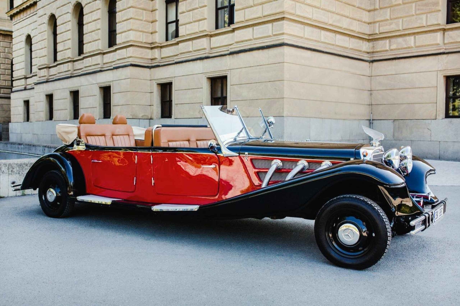42 ReviewsOdkryj piękno praskiej Starówki i Nowego Miasta z tylnego siedzenia repliki kabrioletu Mercedes 770K podczas prywatnej wycieczki z odbiorem i dowozem do hotelu.