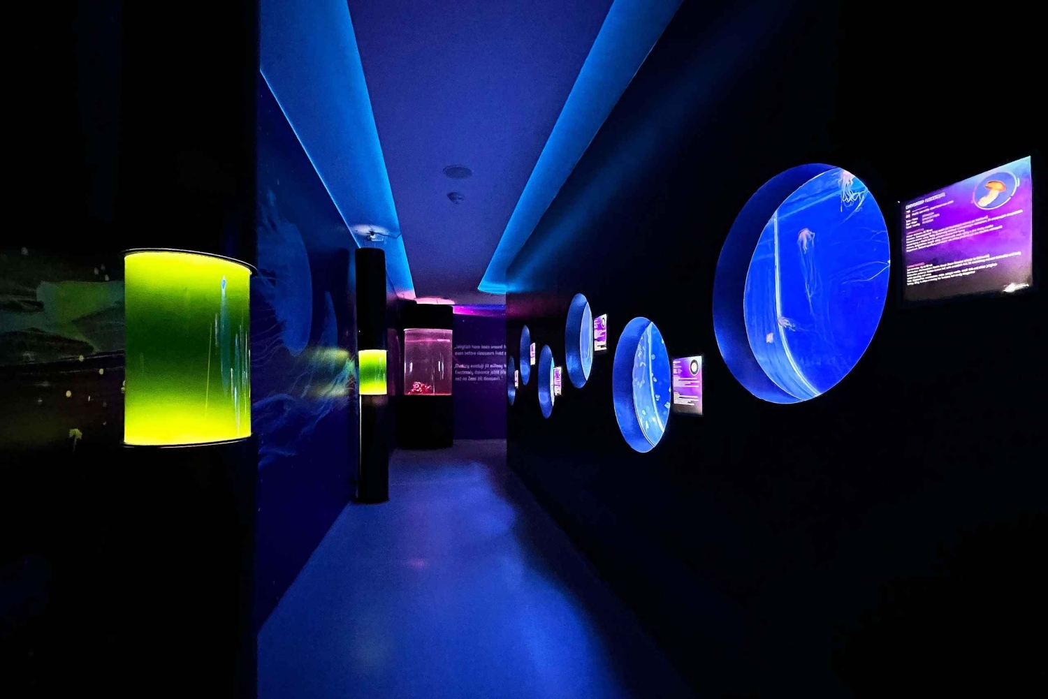 Doświadcz jedynego w swoim rodzaju międzynarodowego projektu, który łączy hipnotyzującą egzystencję meduz z urzekającymi efektami audiowizualnymi w jednym miejscu. Niedawno został uznany przez Guinness World Records za największe sferyczne akwarium. Odwiedź kompleks o powierzchni ponad 700 metrów kwadratowych z 38 akwariami. Podziwiaj ponad 30 różnych gatunków meduz. Zarówno młodsi, jak i starsi odwiedzający mogą cieszyć się mapowaniem wideo i charakterystycznymi atrakcjami.Includes