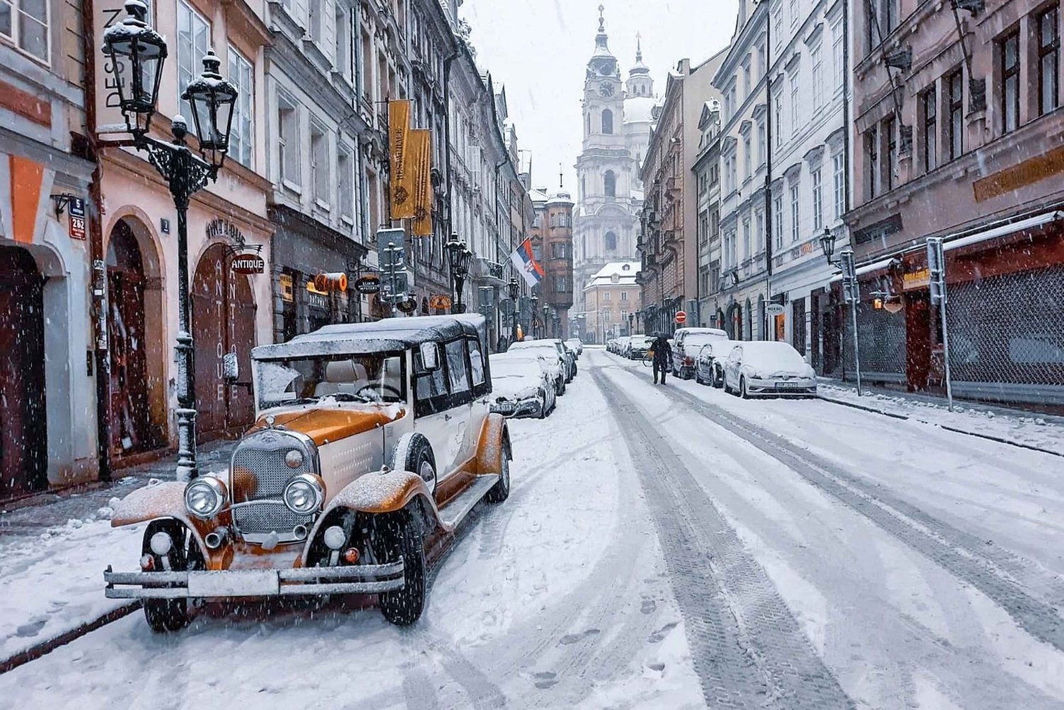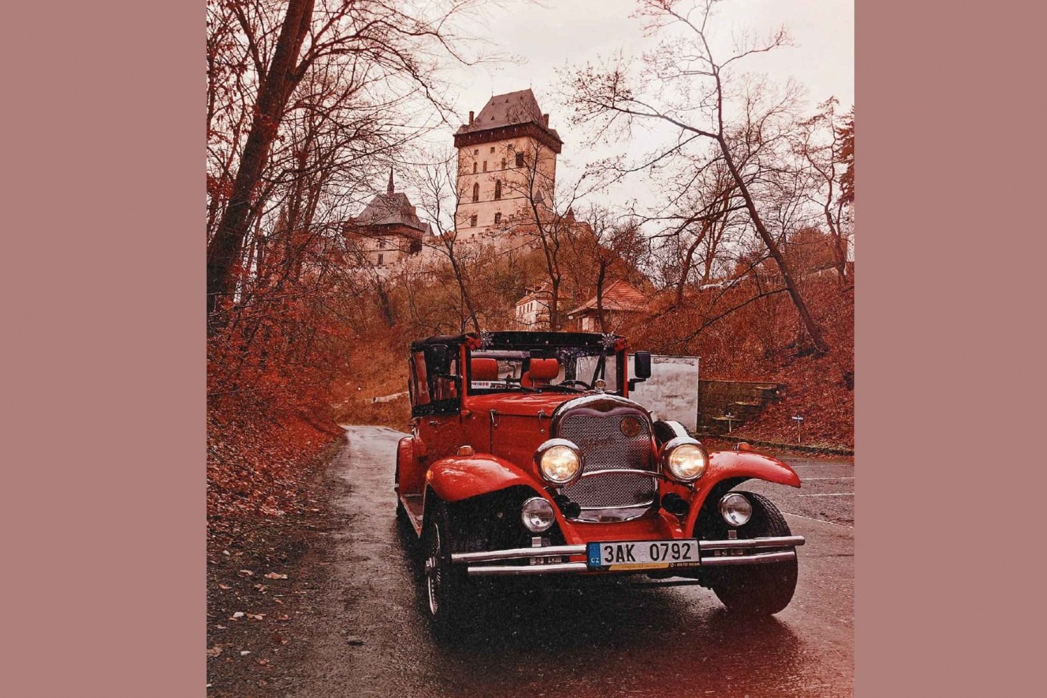 Praga: Castelo de Karlstejn, um conto de fadas, num carro de estilo retro