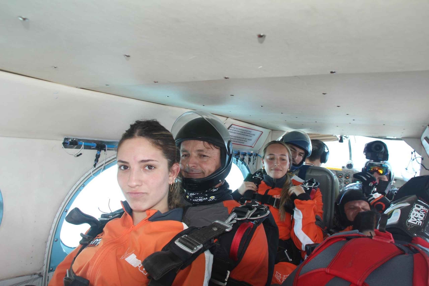 Трансфер от места встречи в/из аэропорта Обзорный полет на высоту 14 000 футов (4 000 м) Прыжок в тандеме со свободным падением за 1 минуту. ФутболкаEasy cancellation